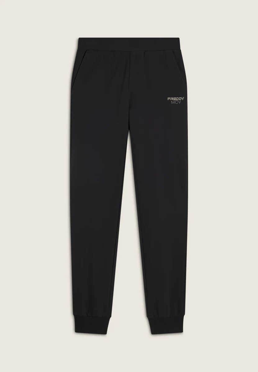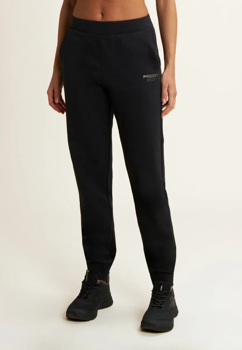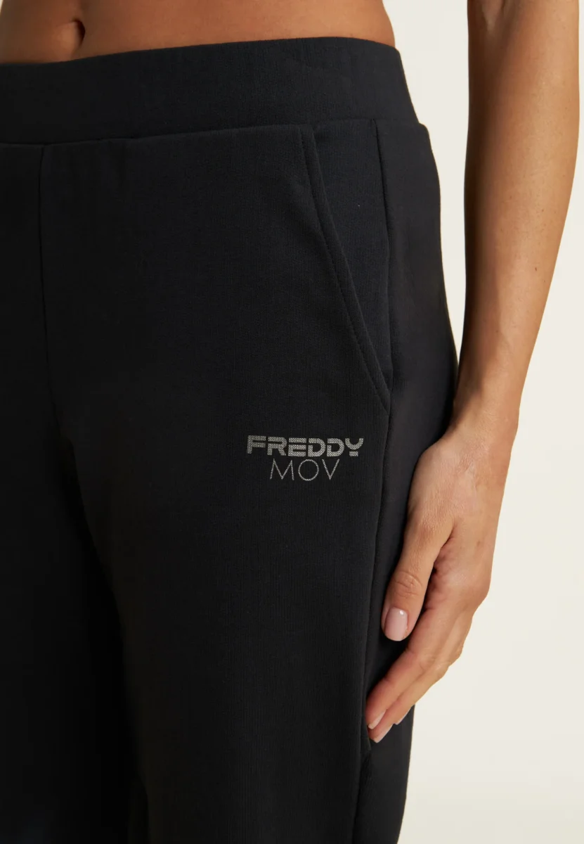 Perfetti per ogni occasione, questi pantaloni sportivi regular fit in French Terry sono dotati di vita regular con elastico interno per il massimo comfort. La lunghezza regular è completata da polsini in costina sul fondo, per un look contemporaneo e funzionale. La piccola stampa metallizzata FREDDY MOV sul fianco sinistro e le tasche anteriori interne aggiungono praticità e stile.