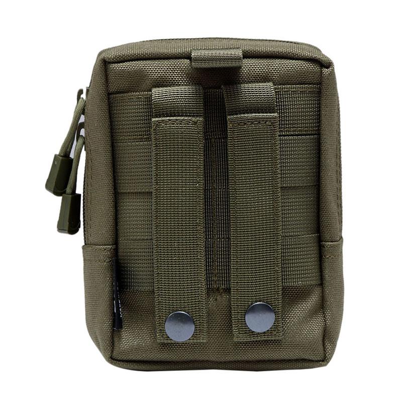 La pochette est composée d’un grand compartiment principal afin de pouvoir y loger votre téléphone, votre batterie portable, un calepin, etc. Deux pattes de fixation permettent de l’accrocher à votre sac à dos ou votre ceinture. Un système MOLLE est situé sur la face avant, ainsi qu’une bande velcro.