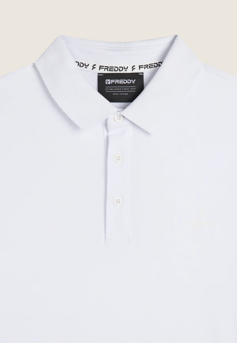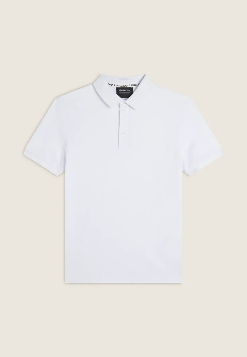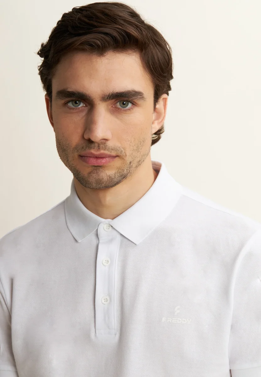 Polo in tessuto piquet 100% cotone dal taglio regular. Design curato con colletto a camicia in costina, chiusura con tre bottoni a occhiello e piccoli spacchi laterali. Dettaglio del logo FREDDY stampato in tono colore sul cuore per uno stile raffinato.