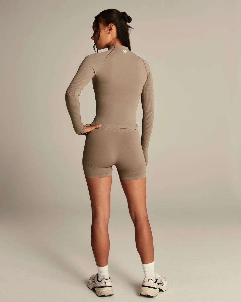 Power Seamless Long Sleeve Full Zip Jacket | Taupe Grey
