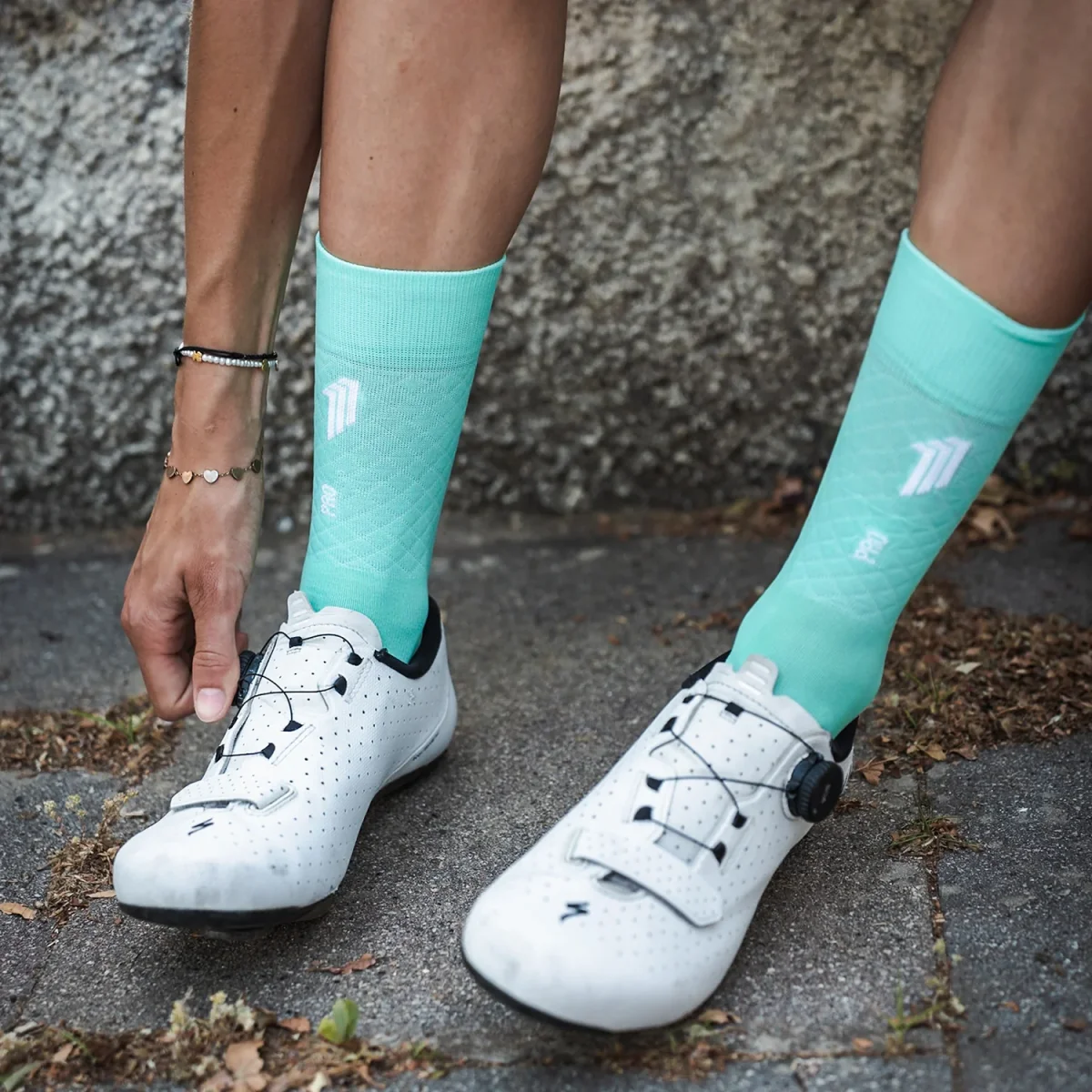 Calcetín de ciclismo excepcionalmente ligero y transpirable diseñado con caña en forma de diamante para combatir el calor y la humedad. La zona alta del pie está cubierta por rejilla para mantener los pies secos. Poseen un tratamiento adicional para potenciar suavidad y comodidad.