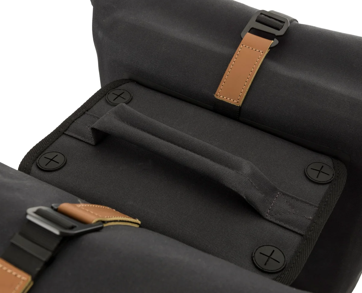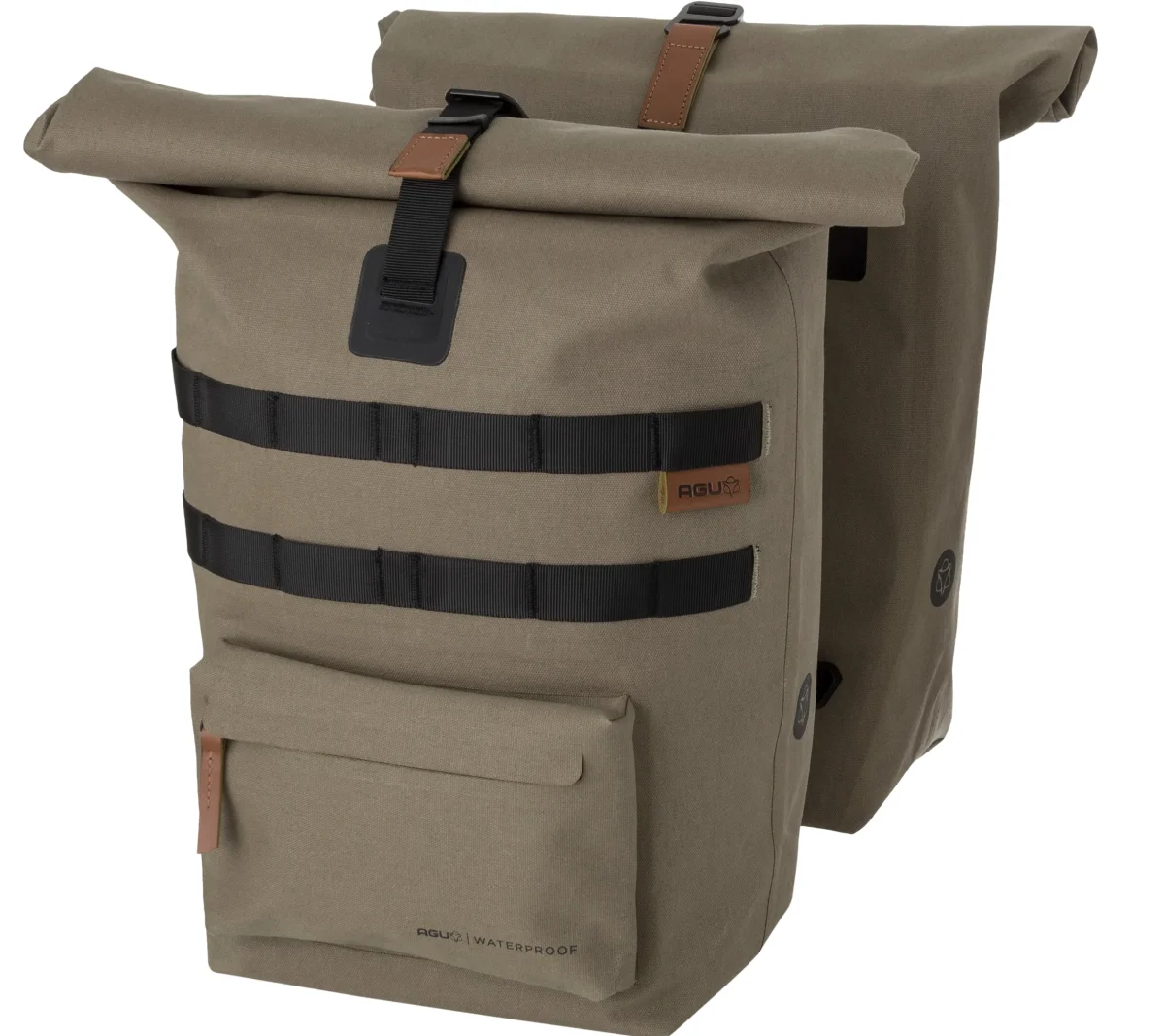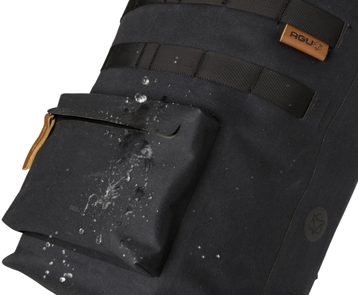 Un sac pour vélo au look aventureux, robuste et luxueux. C’est le nouveau sac double pour vélo Convoy d’AGU. Transportez vos affaires de manière sèche et élégante à vélo, grâce au coton biologique 100% imperméable. Le sac a une capacité de 2 x 17 litres. Le sac est fabriqué en coton biologique 100% imperméable et, grâce aux coutures soudées, est véritablement étanche. Facile à fixer sur le vélo grâce au système de fixation MIK bien connu. Les sacs sont équipés du système AGU Click’nGo Swinglock qui maintient le sac en place. Le sac se ferme avec une fermeture magnétique à enroulement et peut être également sécurisé avec un crochet. A l’avant des deux sacs, il y a un compartiment de rangement supplémentaire avec fermeture éclair. Forte, robuste et élégant, sans compromis sur le confort. Le nouveau sac pour vélo AGU Convoy élève le sac pour vélo au plus haut niveau