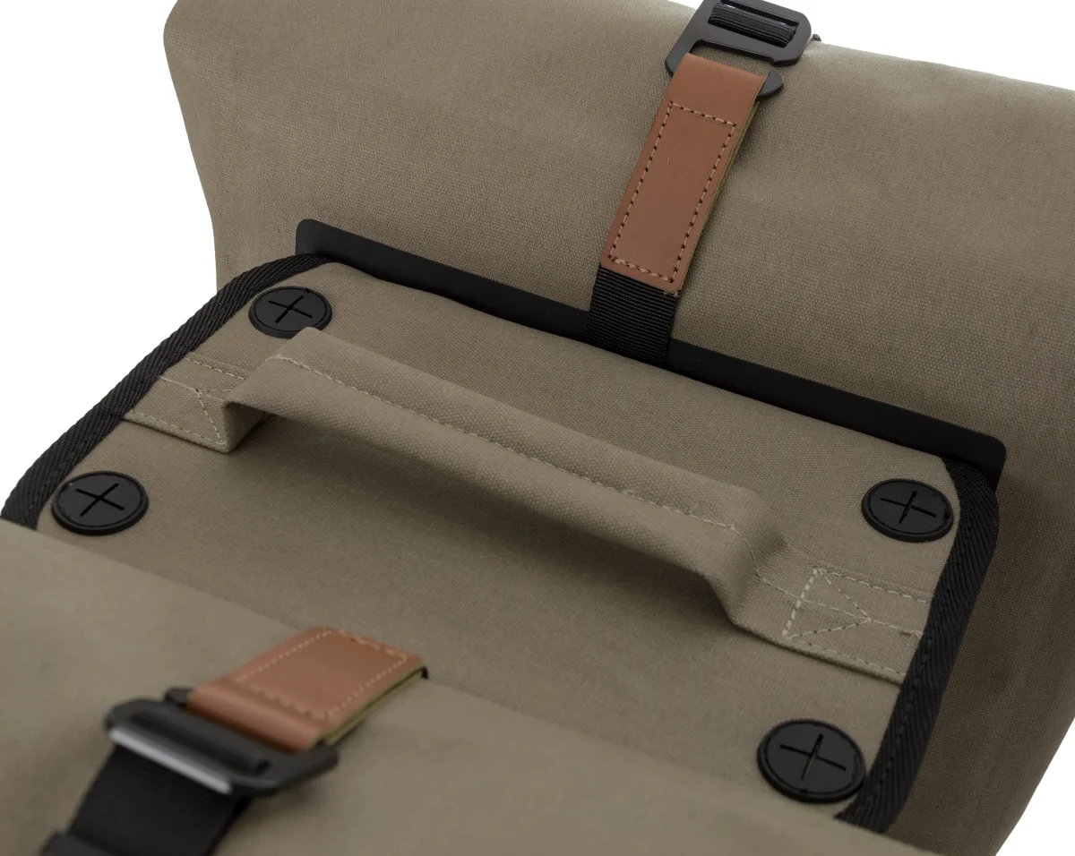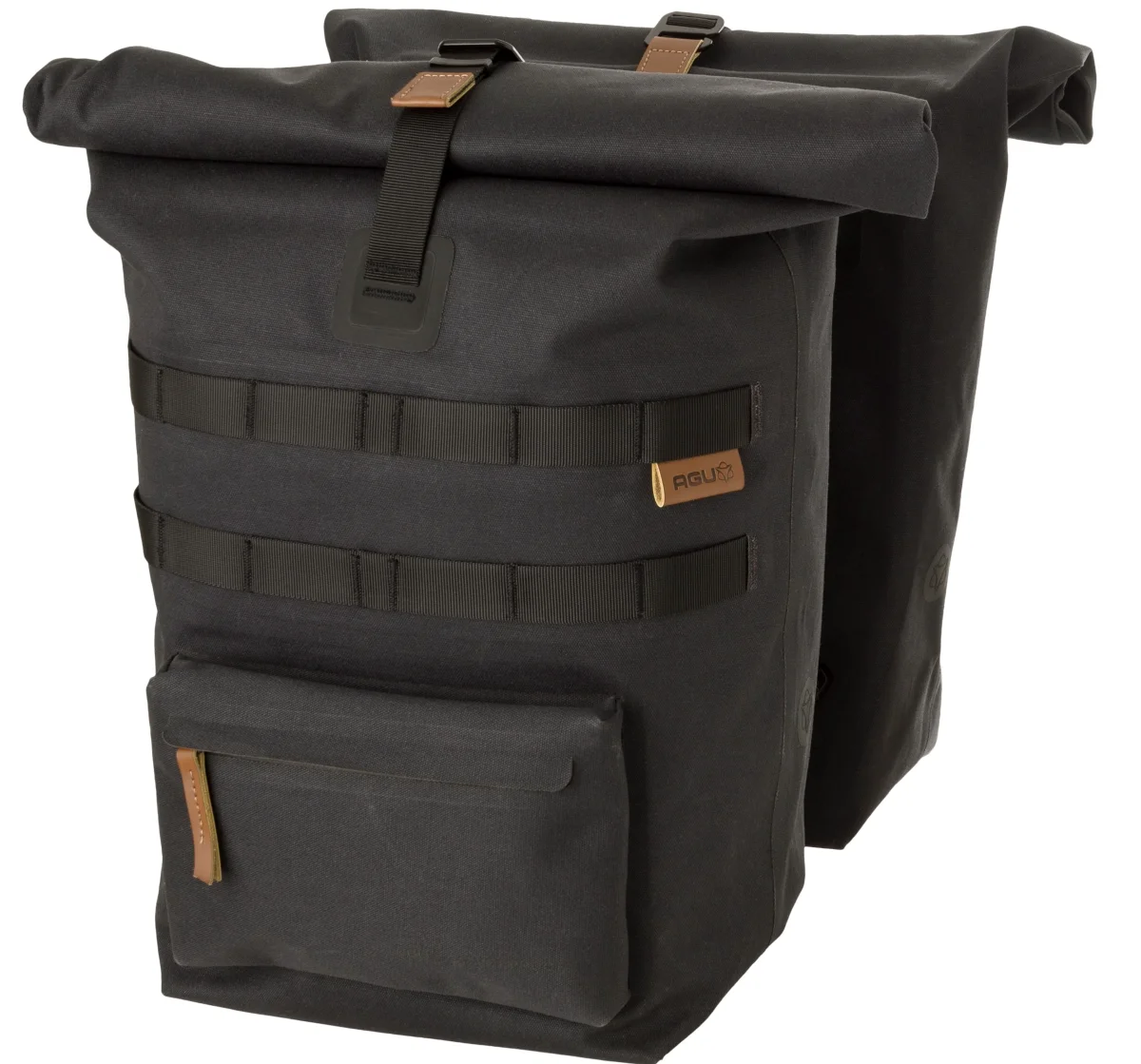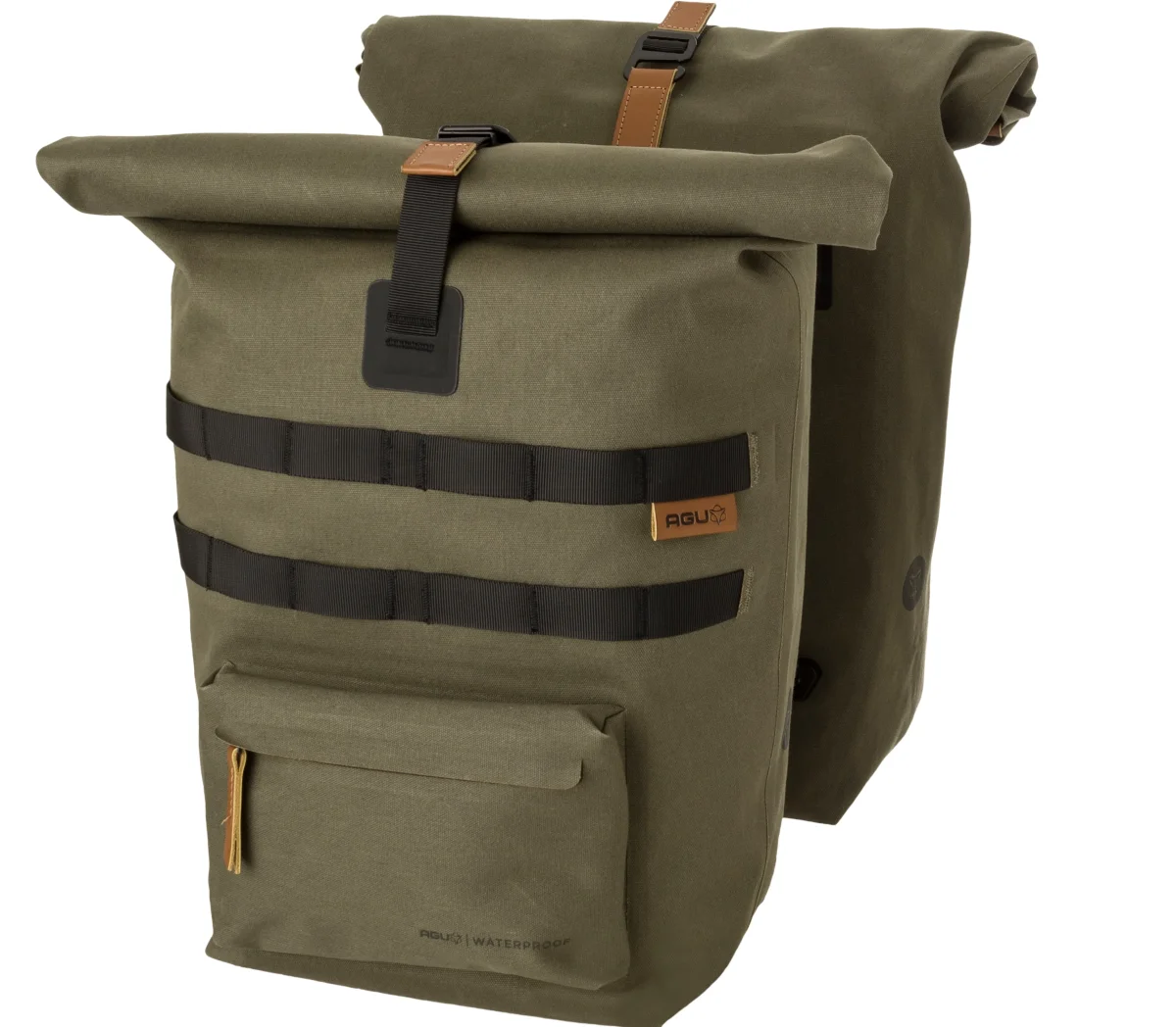 Un sac pour vélo au look aventureux, robuste et luxueux. C’est le nouveau sac double pour vélo Convoy d’AGU. Transportez vos affaires de manière sèche et élégante à vélo, grâce au coton biologique 100% imperméable. Le sac a une capacité de 2 x 17 litres. Le sac est fabriqué en coton biologique 100% imperméable et, grâce aux coutures soudées, est véritablement étanche. Facile à fixer sur le vélo grâce au système de fixation MIK bien connu. Les sacs sont équipés du système AGU Click’nGo Swinglock qui maintient le sac en place. Le sac se ferme avec une fermeture magnétique à enroulement et peut être également sécurisé avec un crochet. A l’avant des deux sacs, il y a un compartiment de rangement supplémentaire avec fermeture éclair. Forte, robuste et élégant, sans compromis sur le confort. Le nouveau sac pour vélo AGU Convoy élève le sac pour vélo au plus haut niveau