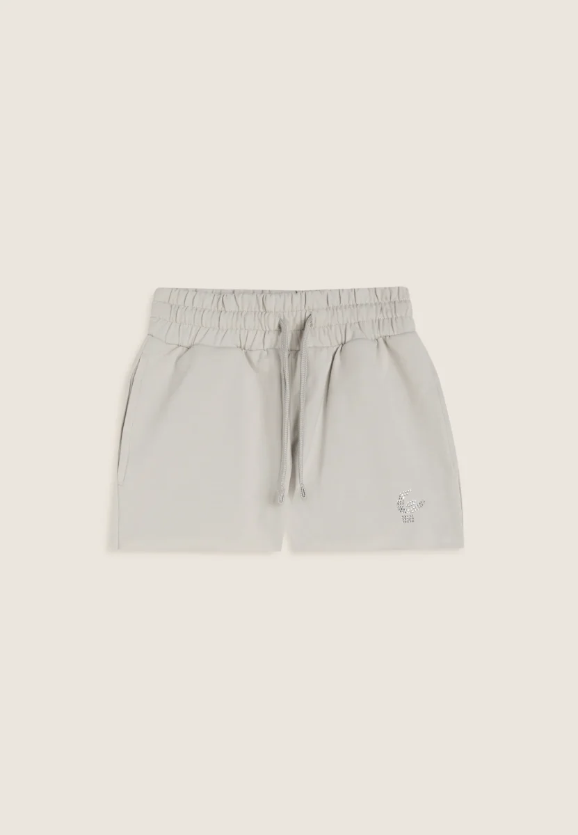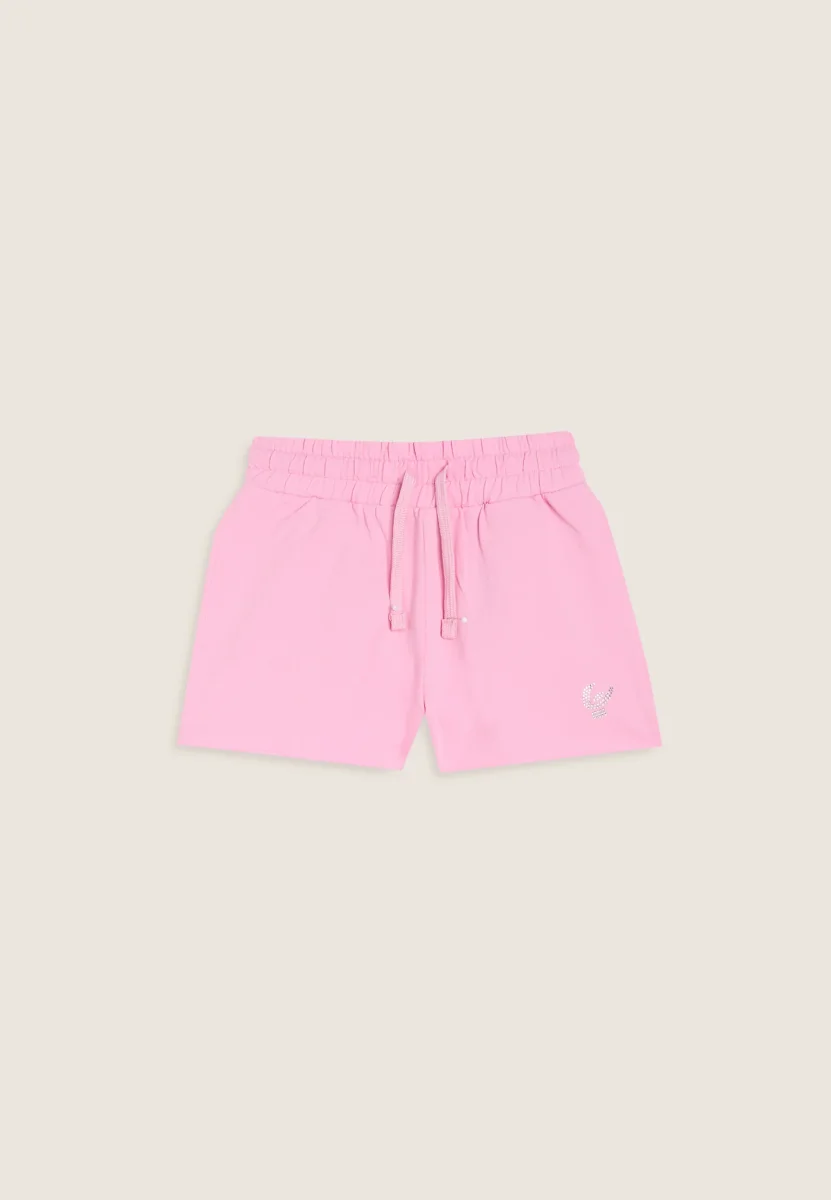 Shorts Bambina in Cotone Elasticizzato con Logo in Strass