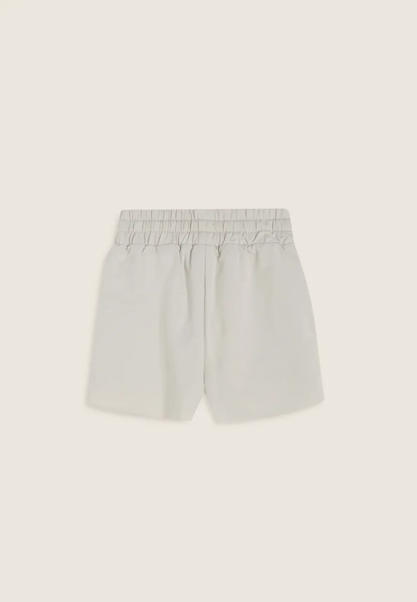 Questi pantaloncini corti da bambina uniscono comfort e dettagli luminosi per un look pratico ma femminile. Realizzati in cotone elasticizzato, offrono una vestibilità confortevole grazie alla vita con elastico interno e coulisse in tono colore. Le tasche interne aggiungono funzionalità, mentre il fondo dritto mantiene un design essenziale. A decorare il capo, il logo “omino” FREDDY composto da strass sul fondo gamba sinistro, per un tocco brillante e raffinato.