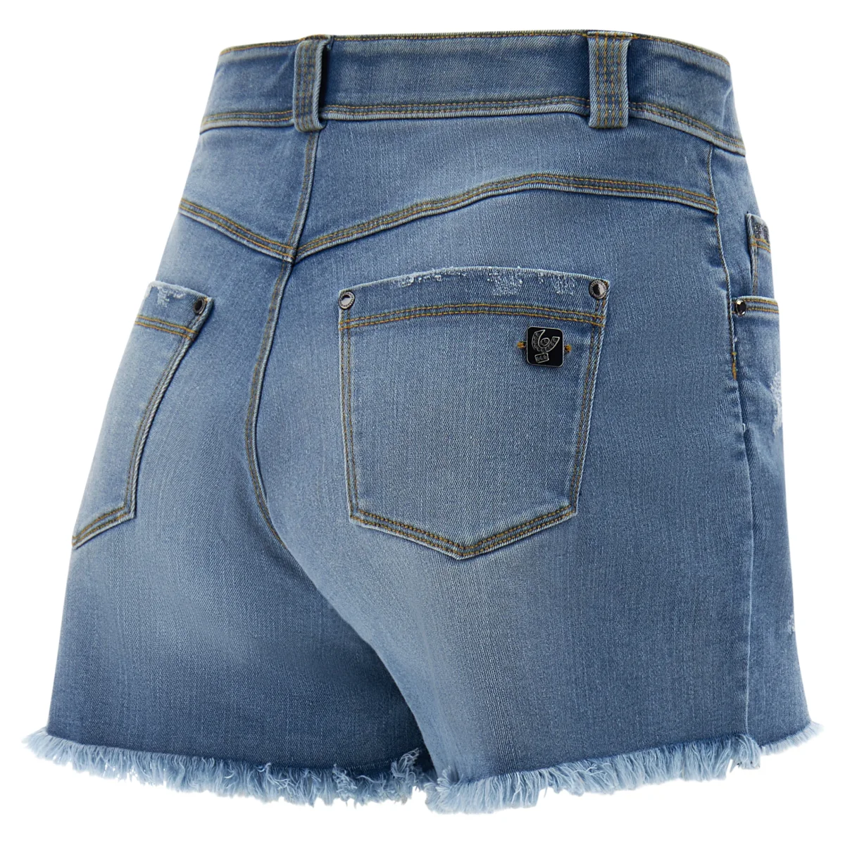 Shorts FREDDY BLACK in denim chiaro con fondo sfrangiato