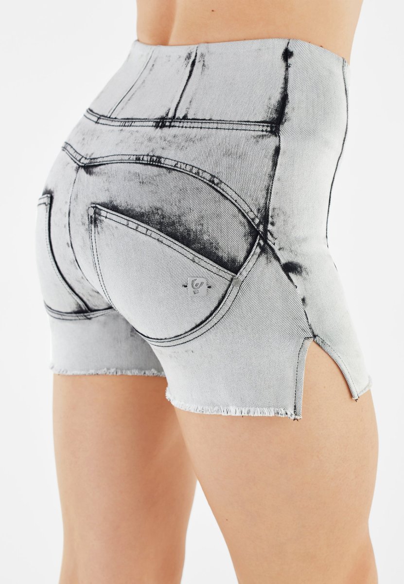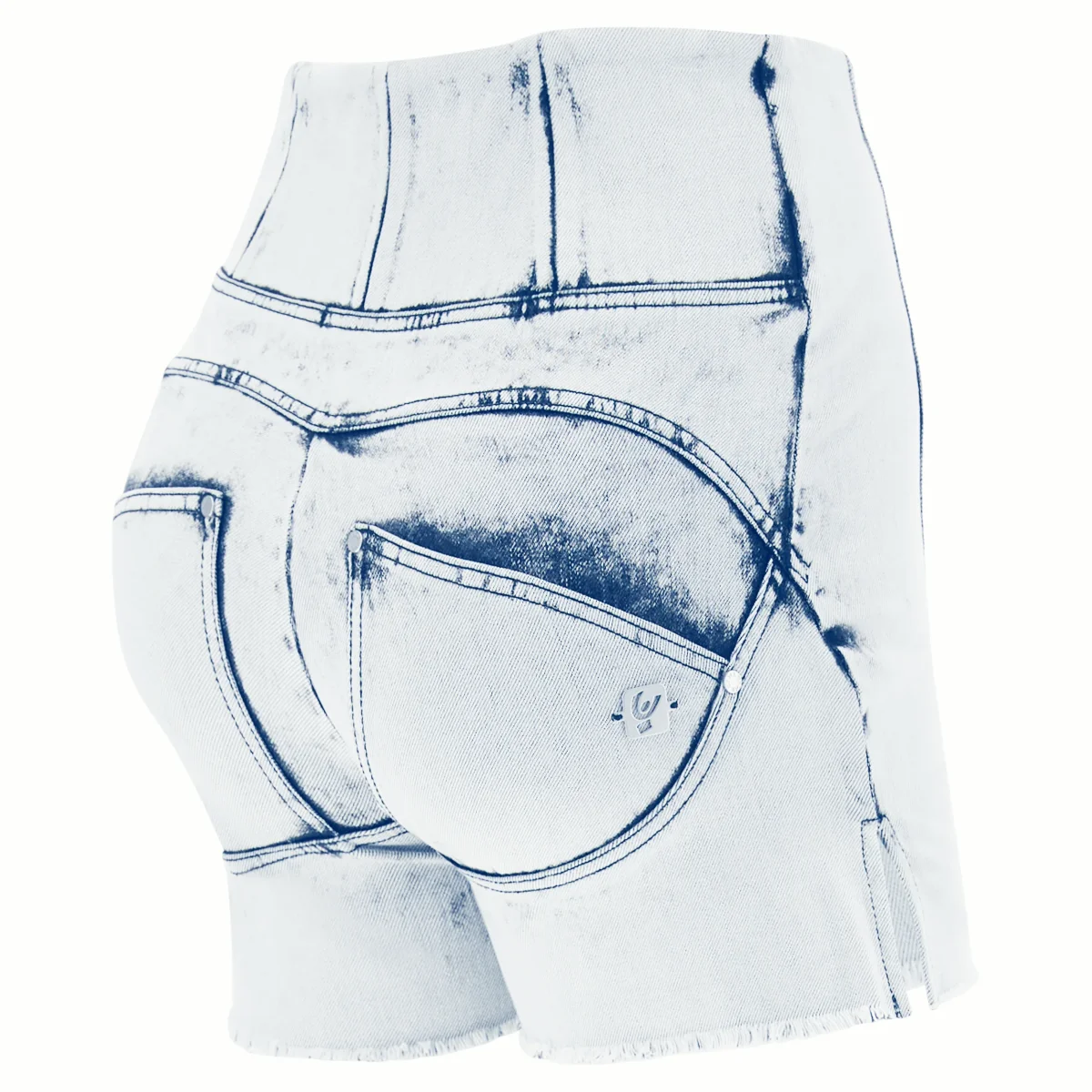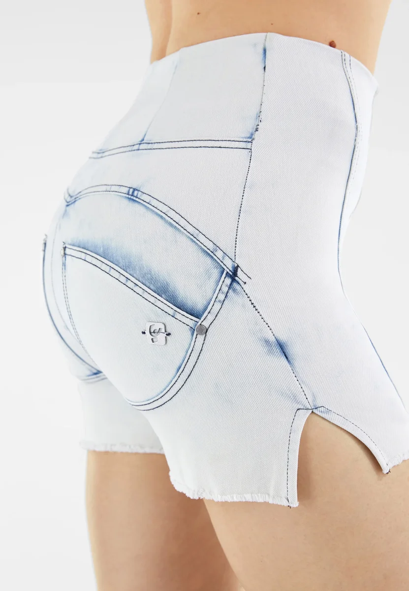 Shorts push up WR.UP® con spacchi in denim super slavato