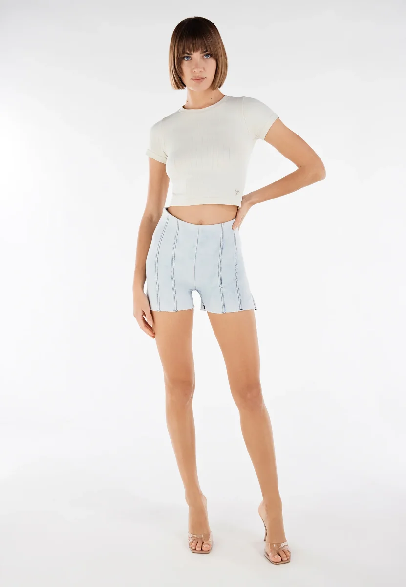 Jeans shorts push up della linea WR.UP® in denim elasticizzato ecologico con effetto super slavato. Hanno vita alta con zip laterale invisibile, tasche frontali e posteriori vere e fondo con taglio vivo e spacchi laterali. Capo dai toni autentici votato all’esaltazione della tua femminilità grazie al design e all’effetto shaping dato dalla tecnologia WR.UP® brevettata da Freddy che solleva le forme e modella la silhouette per mezzo di un particolare sistema di inserti e cuciture.