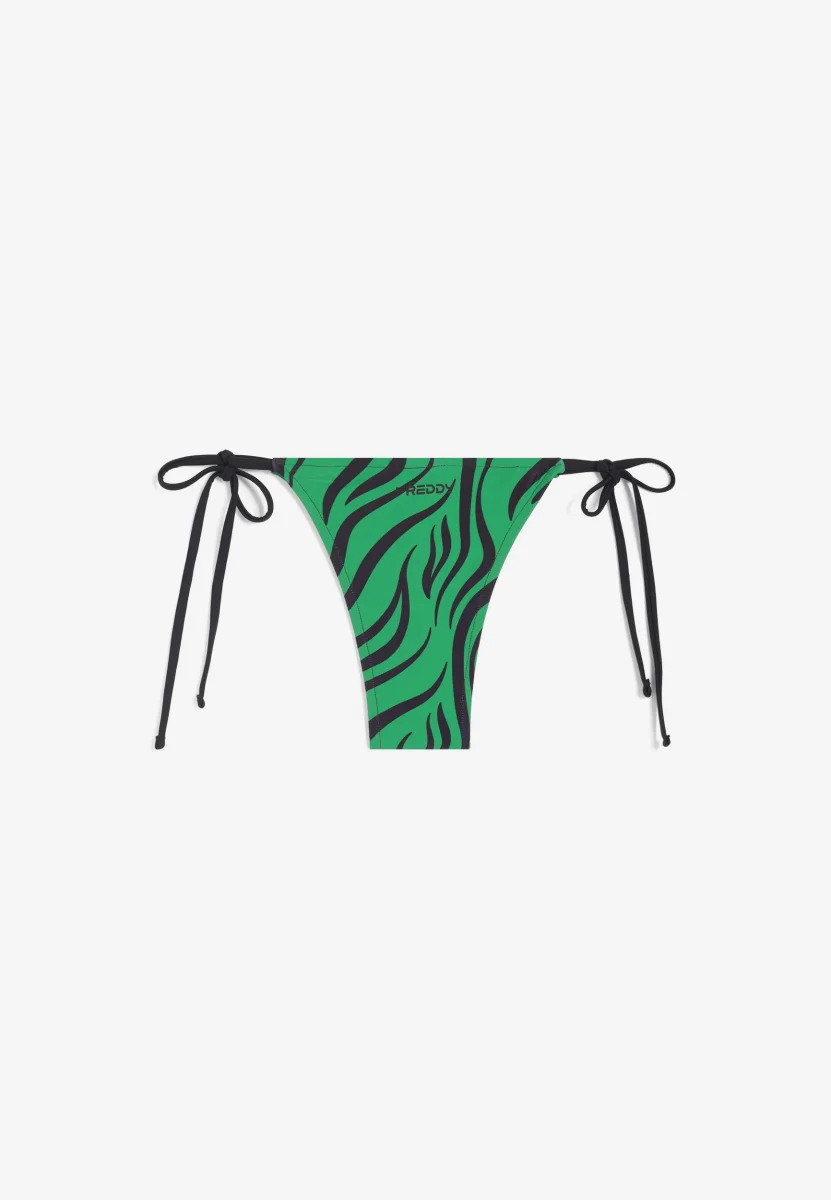 Questi slip da bikini hanno la chiusura con laccetti che ti permette di regolarne la vestibilità per indossarli più o meno sgambati. La stampa zebrata su fondo colorato dona un tocco di stile alle tue giornate in spiaggia o in piscina.