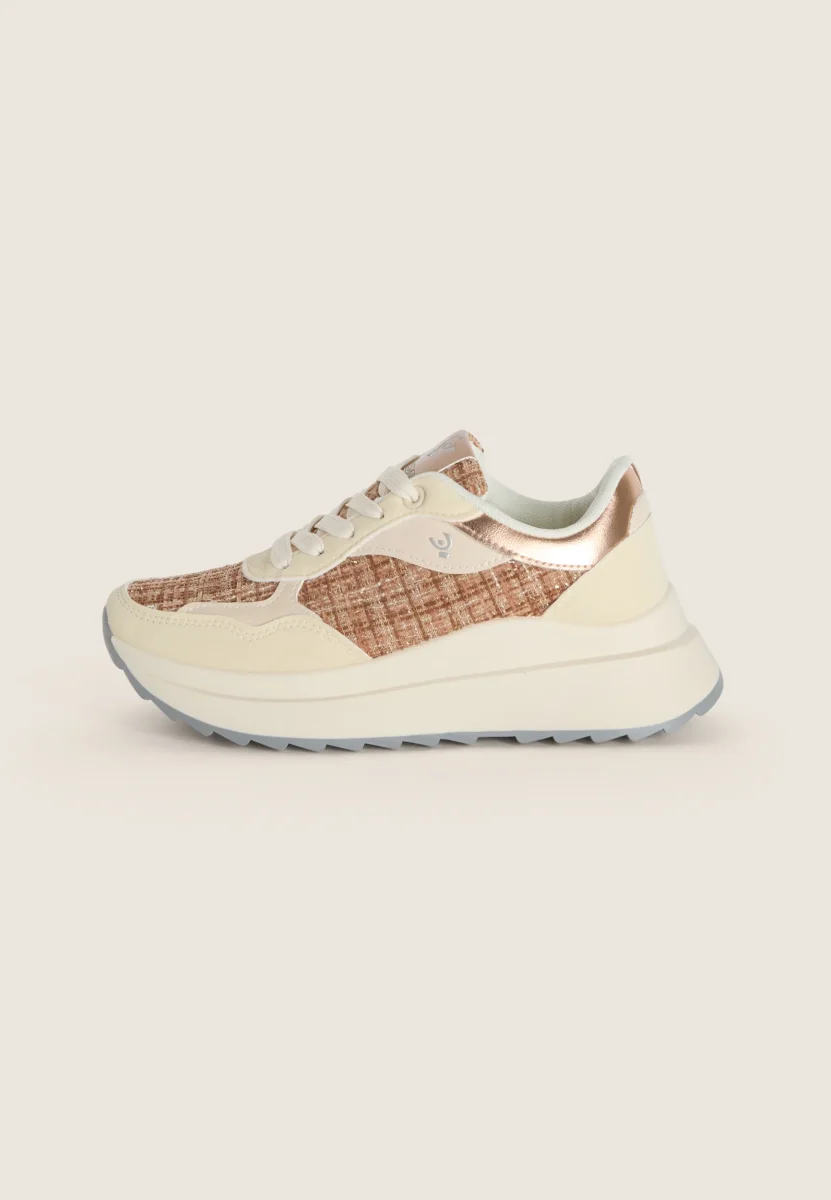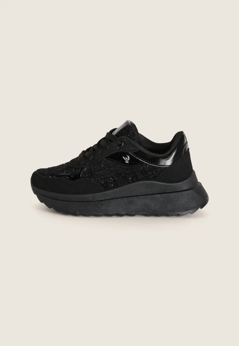 Queste sneakers in similpelle e tessuto, con dettagli in vernice, offrono un design raffinato e contemporaneo. I lacci in tessuto e gli occhielli in metallo aggiungono un tocco di eleganza, mentre la soletta removibile « Massage » garantisce un comfort superiore ad ogni passo. Il battistrada in gomma antiscivolo assicura una calzata sicura, e i piccoli loghi […]