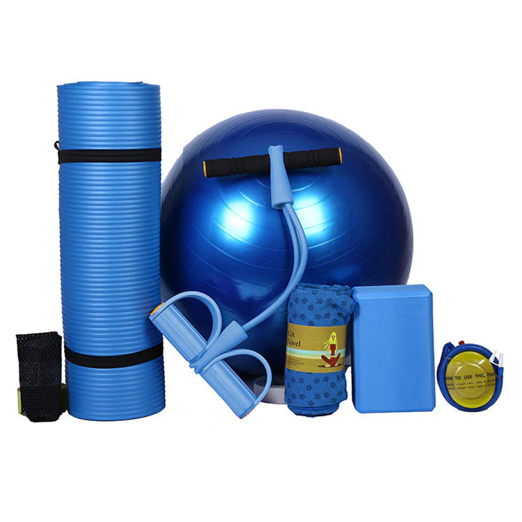 SYNERFIT Kits de Yoga 5 en 1 inclus Tapis de yoga , serviette, balle de yoga, brique de yoga, fitness band, EVA haute densité inlcus sac de transport .Modéle Yoga fit colorie Bleu