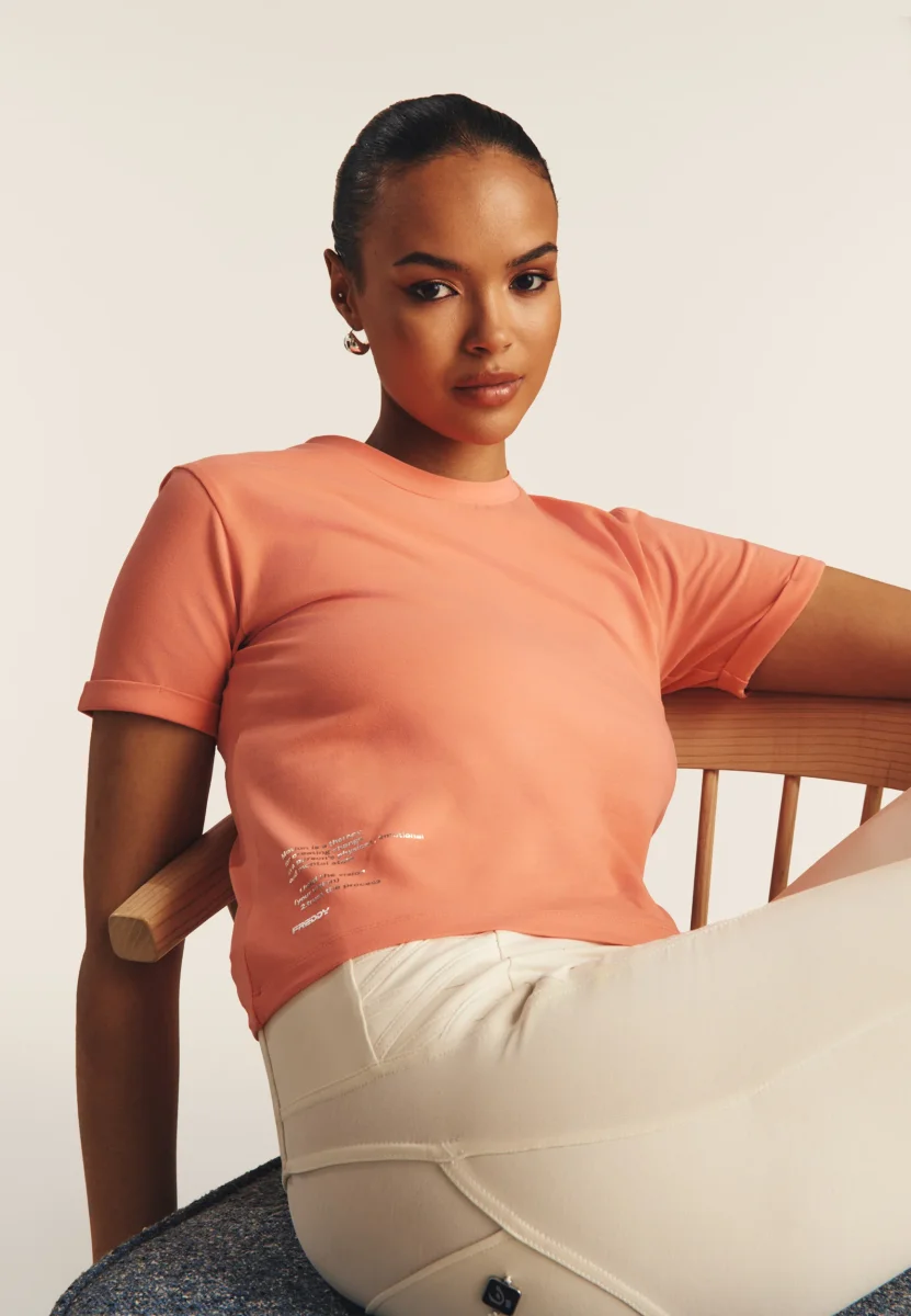 Una T-shirt regular fit versatile e confortevole, realizzata in jersey leggero stretch per una vestibilità perfetta. Il modello, con scollo tondo e maniche corte, si distingue per i dettagli grafici posizionati sul fondo destro, che donano al capo uno stile unico e contemporaneo. Ideale per completare con semplicità e personalità qualsiasi outfit casual.