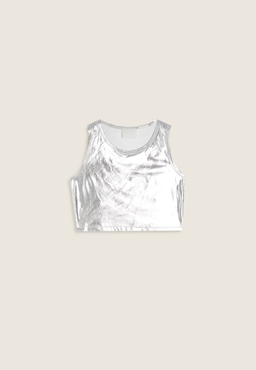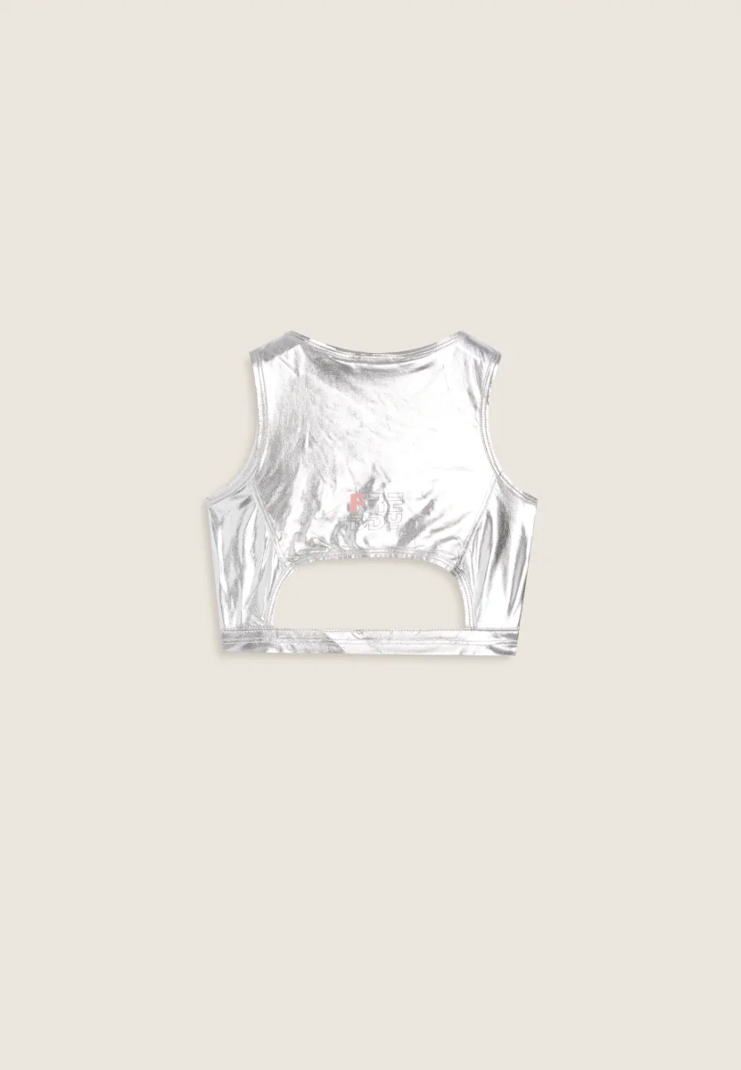 Top Bambina in Tessuto Tecnico Argento con Cut Out