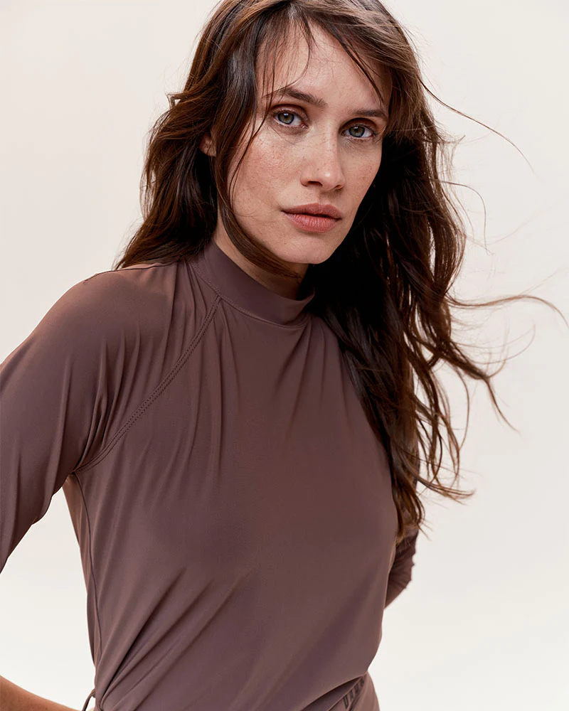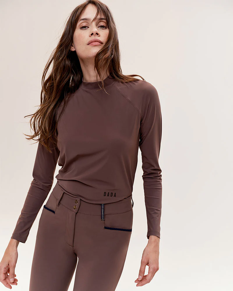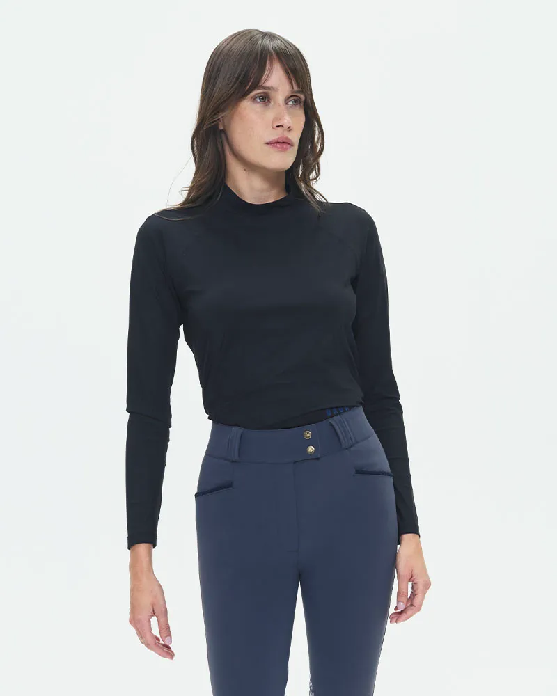 T-shirt technique léger d’équitation à manches longues, conçu pour les cavalières recherchant confort et performance. Avec son tissu italien ultra respirant, léger et protégeant des rayons UV, il offre une coupe cintrée et un col montant idéal pour l’équitation. Disponible en café, noir et marine, ce modèle allie élégance et praticité grâce à son entretien facile.