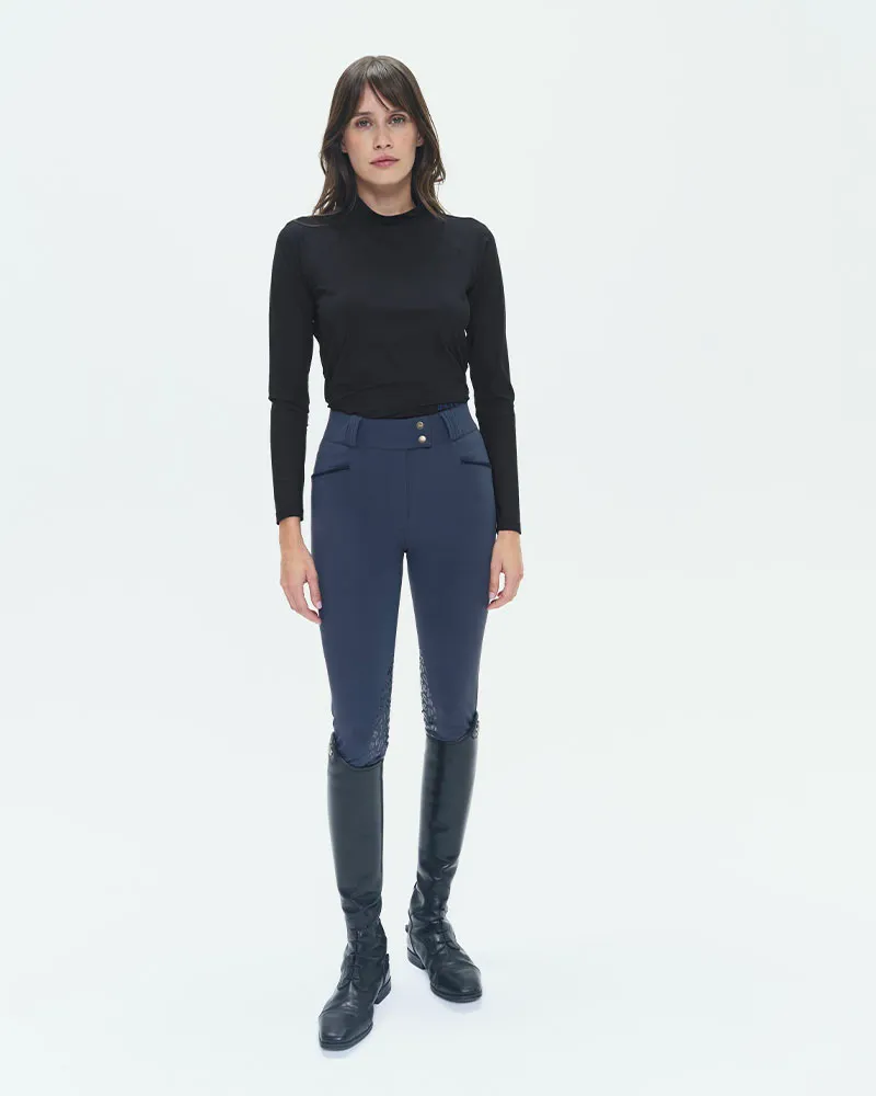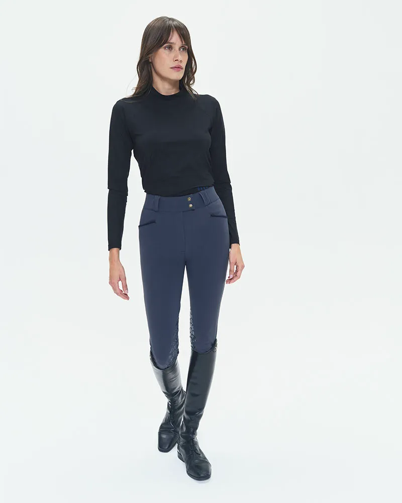 T-shirt technique léger d’équitation à manches longues, conçu pour les cavalières recherchant confort et performance. Avec son tissu italien ultra respirant, léger et protégeant des rayons UV, il offre une coupe cintrée et un col montant idéal pour l’équitation. Disponible en café, noir et marine, ce modèle allie élégance et praticité grâce à son entretien […]