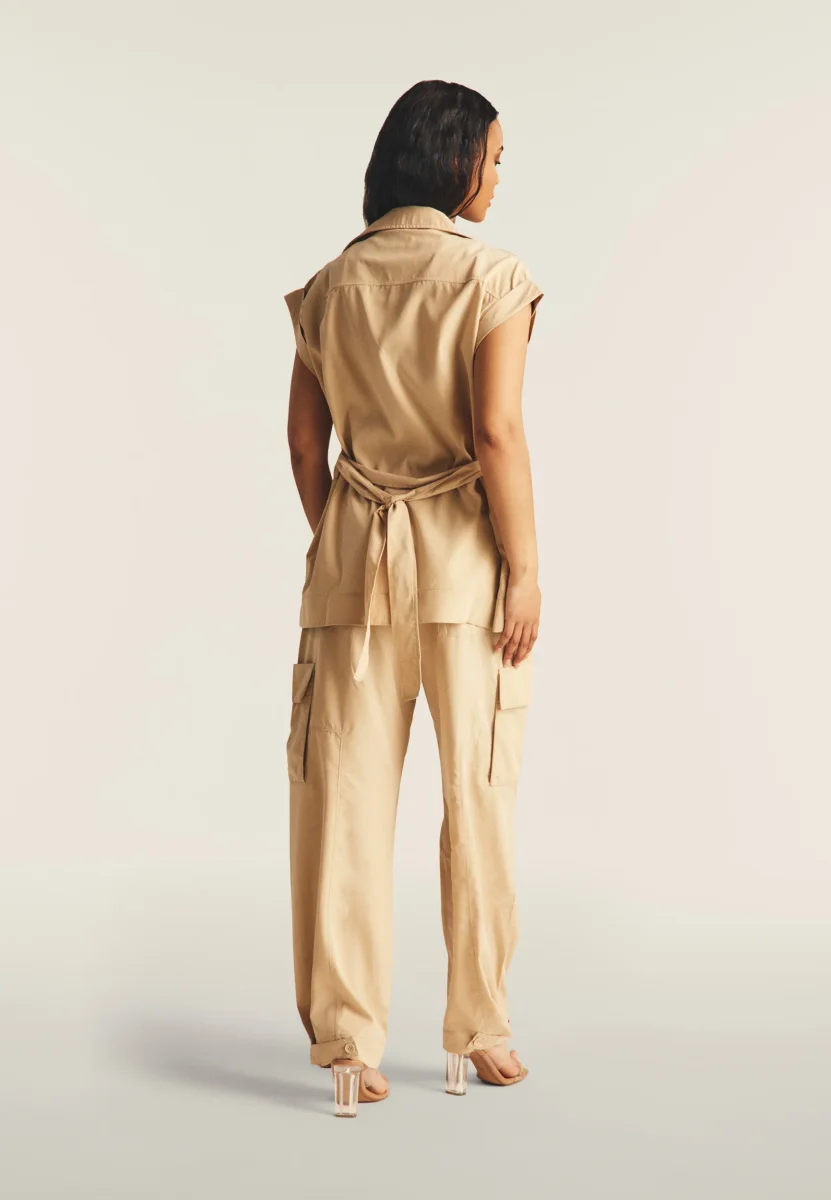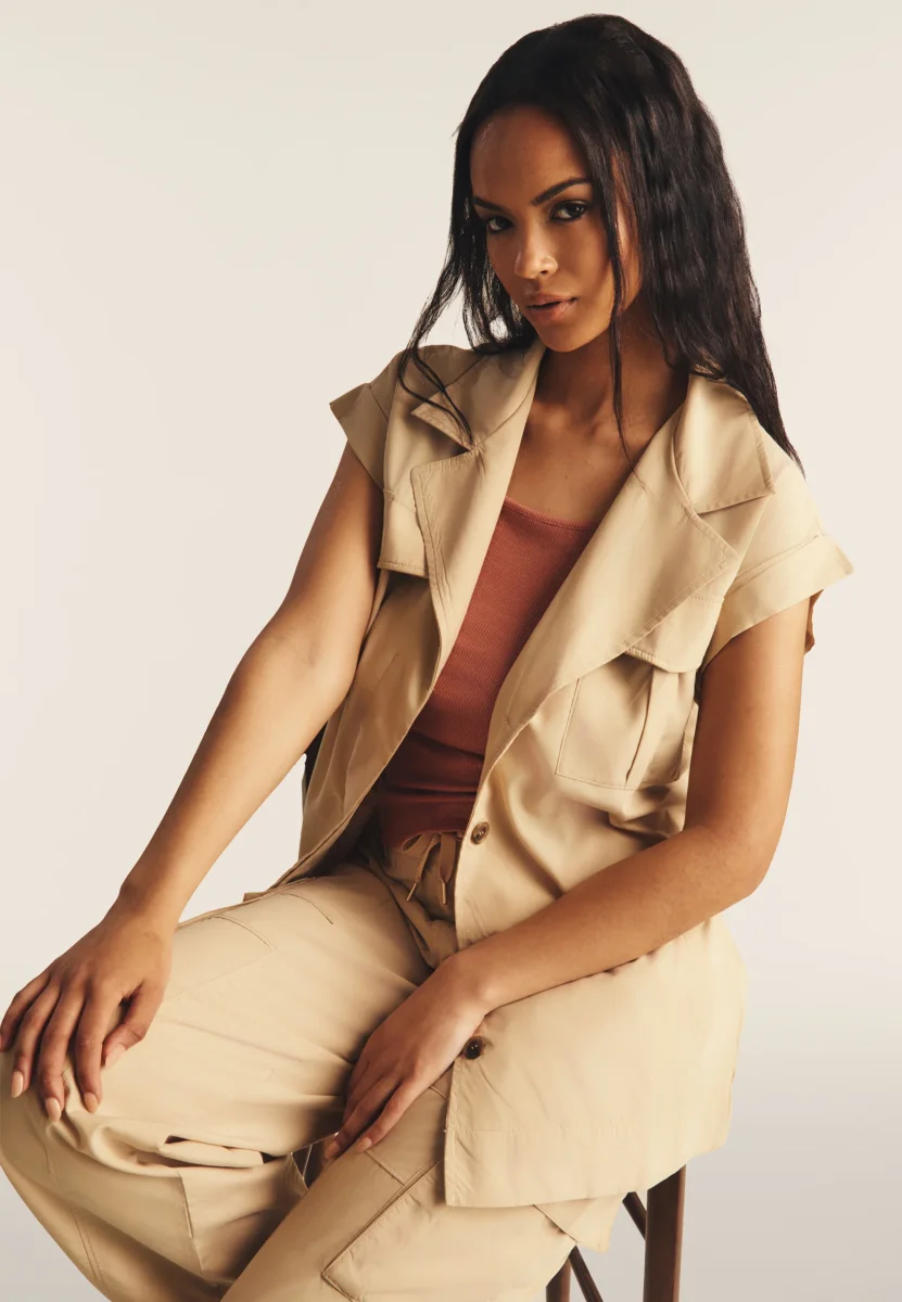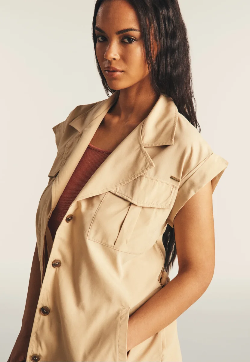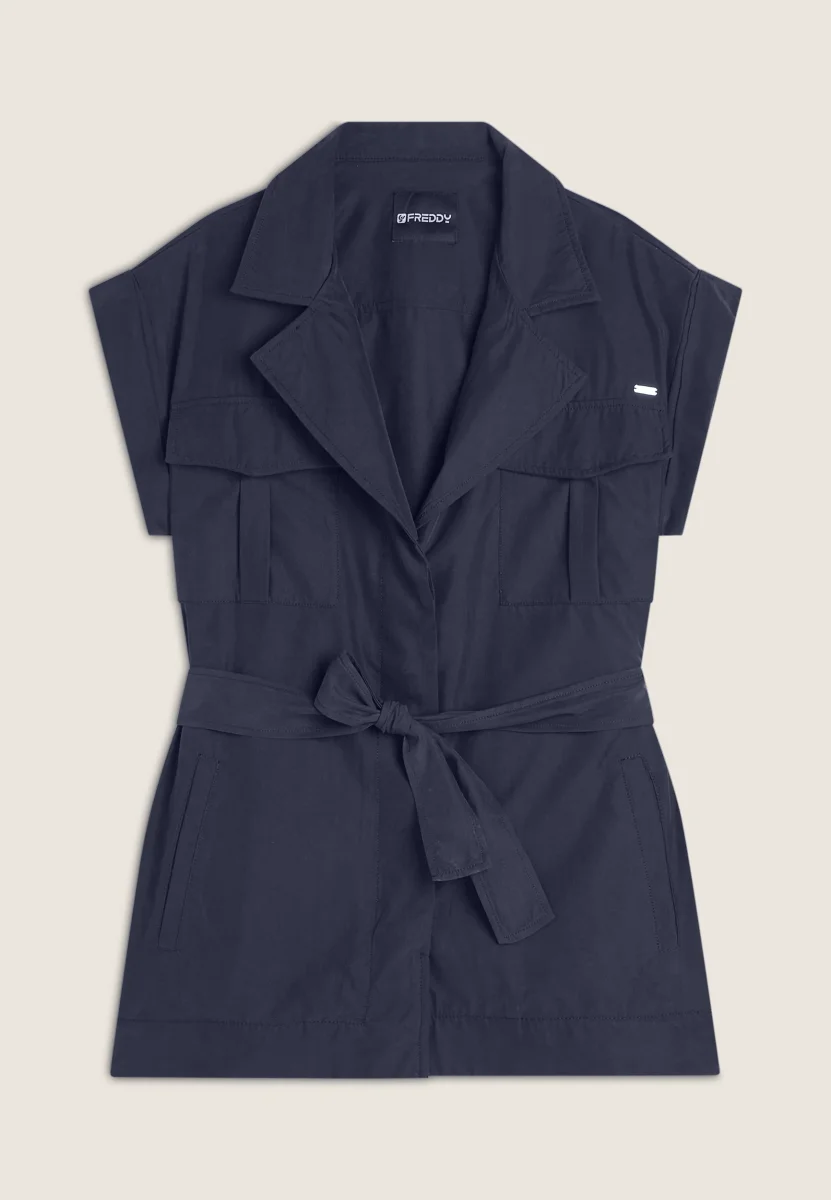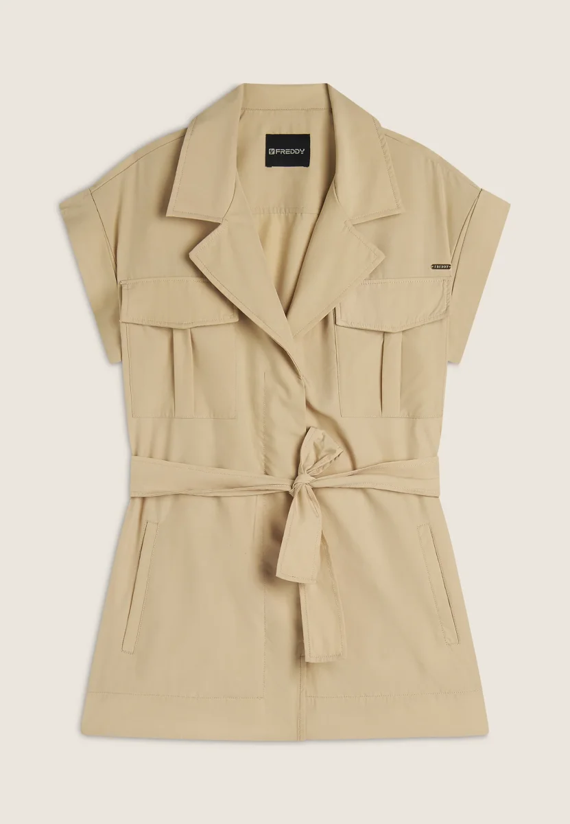 Trench donna senza maniche con cintura in vita