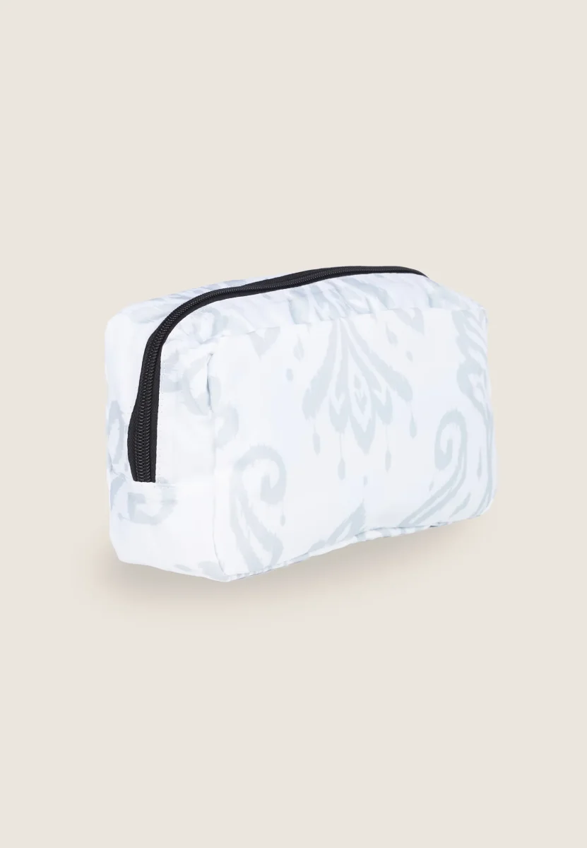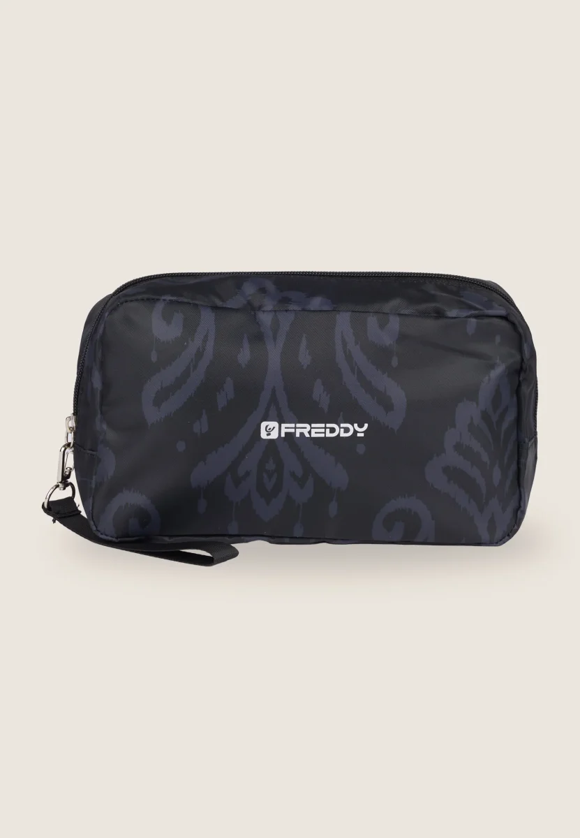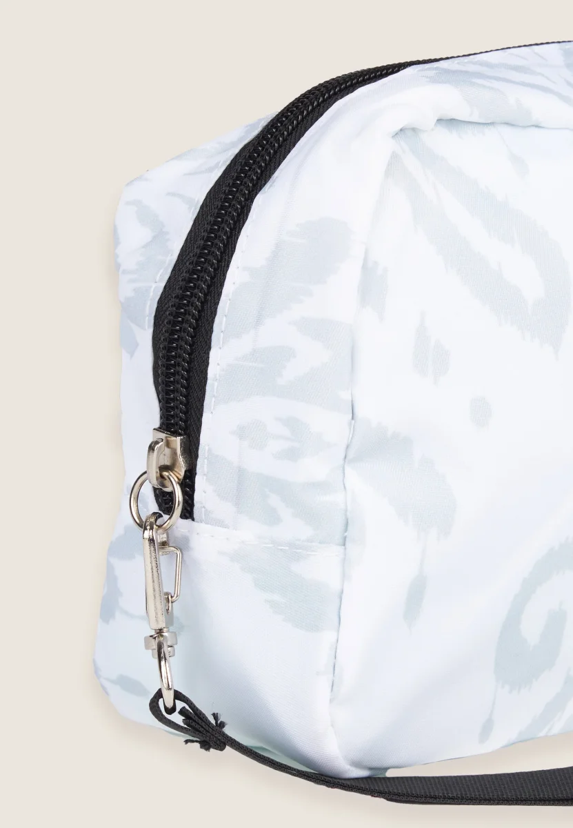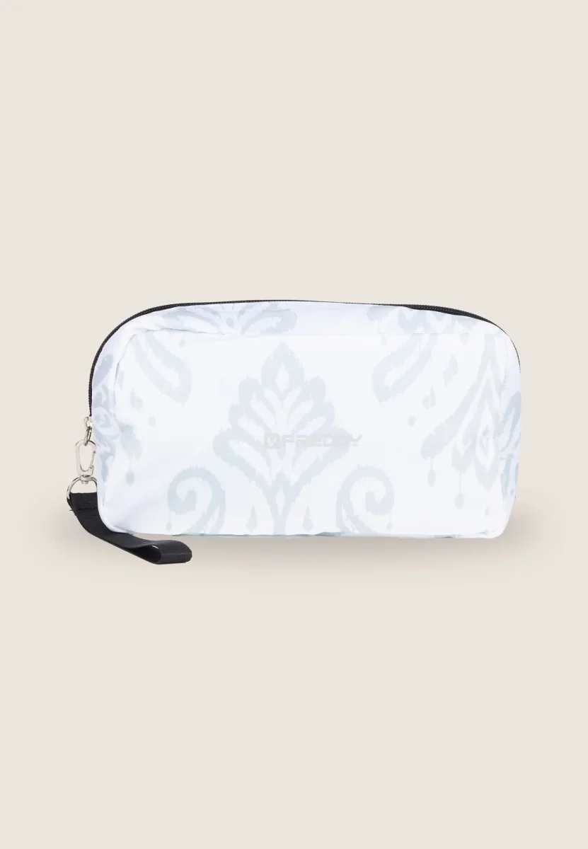 Eleganza compatta con un tocco di freschezza: questa trousse a fantasia floreale stilizzata è l’accessorio perfetto per organizzare i tuoi piccoli essenziali. La chiusura a zip garantisce sicurezza, mentre il laccetto staccabile ti consente di portarla comodamente al polso o di utilizzarla come pratico organizer all’interno della tua borsa. Un accessorio femminile e versatile che non passerà inosservato.