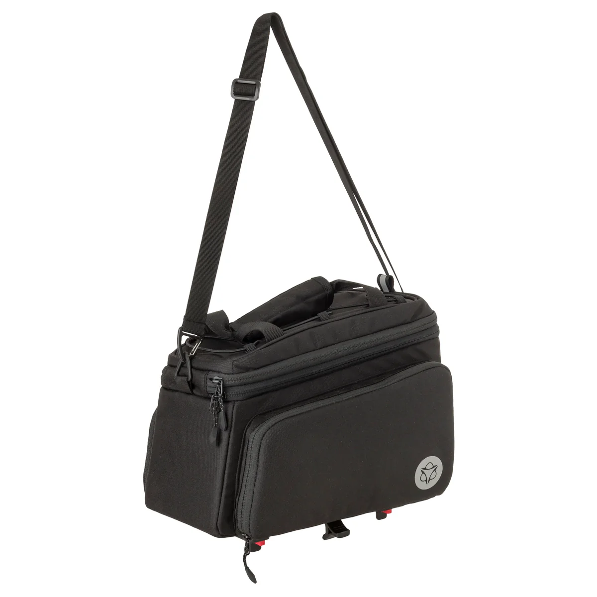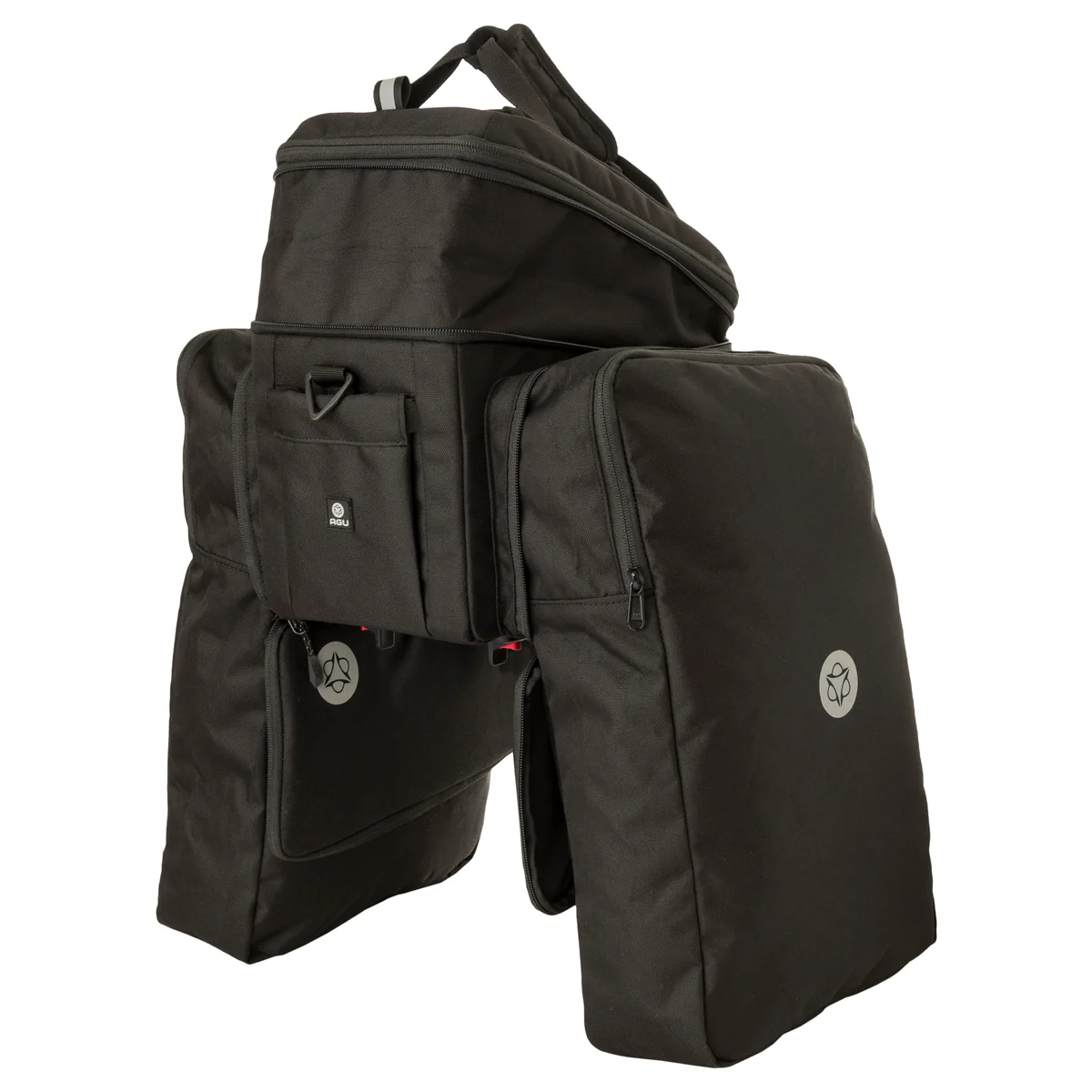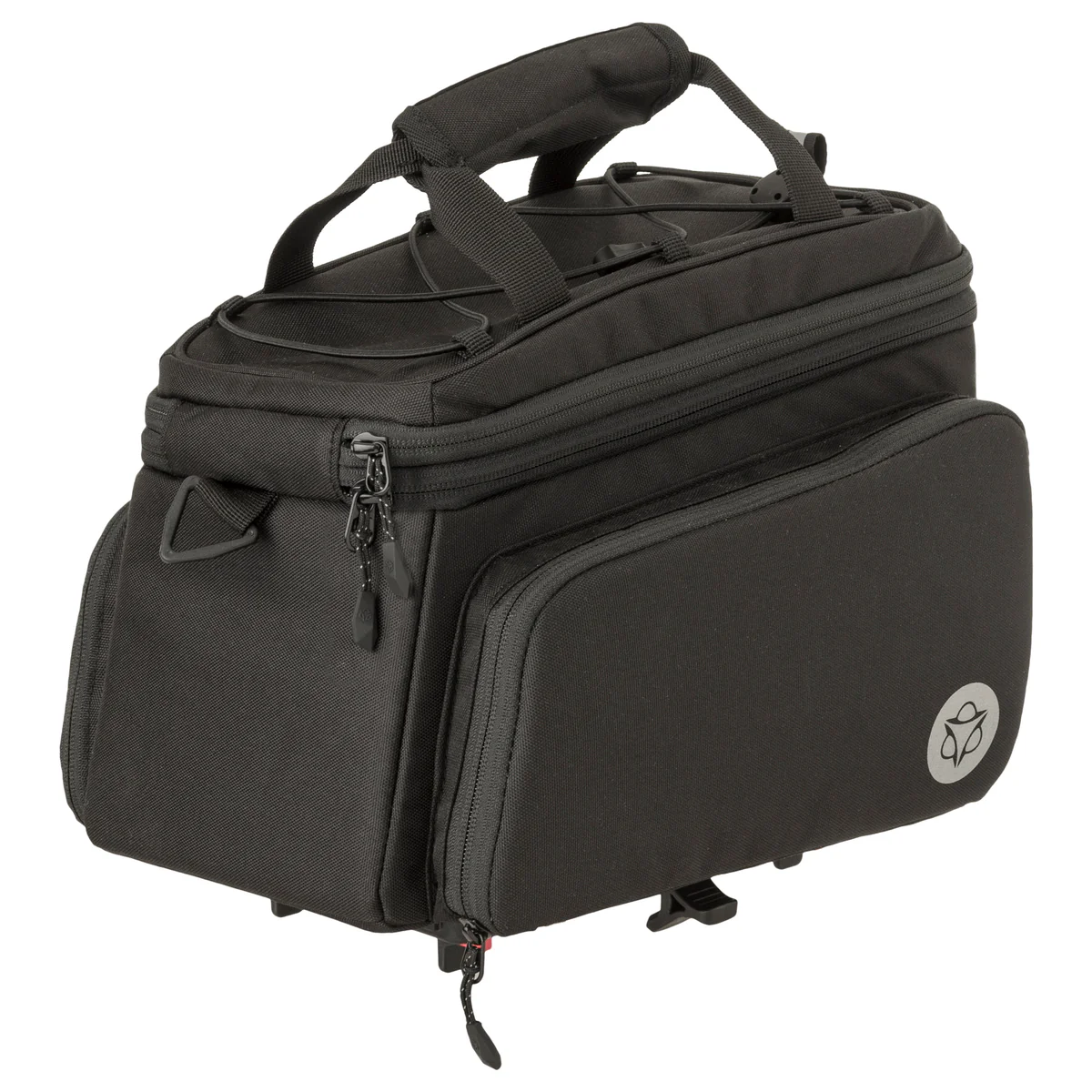 Découvrez notre Trunkbag. Nous avons une large gamme de sacoches de vélo, mais avec l’arrivée du Trunkbag AGU, nous pouvons dire que nous utilisons de manière optimale tout l’espace sur le vélo. Ce sac pour votre porte-bagages est idéal pour de longues balades à vélo ou comme espace de rangement supplémentaire pendant vos vacances à vélo. Le sac a une capacité de 30 litres et est fabriqué en polyester recyclé hydrofuge. Il y a une réflexion 3M sous la forme du logo AGU sur les deux côtés du sac. La technique spéciale et plus durable du Dope Dye améliore la solidité des couleurs du sac. Le sac est facile à fixer sur le porte-bagages grâce au système Klickfix UniKlip II. Un porte-bouteille d’eau est situé à l’arrière du sac. De chaque côté du sac, il y a des compartiments de rangement supplémentaires avec fermeture à glissière. Il y a une bande élastique sur le dessus du sac, pour emporter une veste ou des vêtements de pluie supplémentaires avec vous. Le sac est livré avec une bandoulière, vous pouvez donc facilement le retirer du vélo. Utilisez l’espace sur votre vélo de manière optimale et emportez vos affaires en toute sécurité et confort.